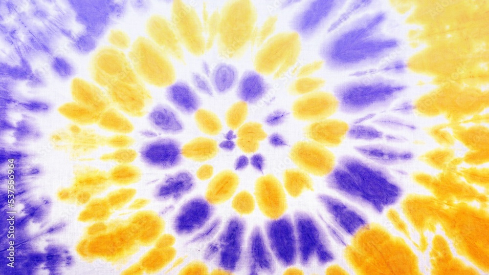 Tableau sur toile Colorful tie-dye pattern background with yellow and blue staines