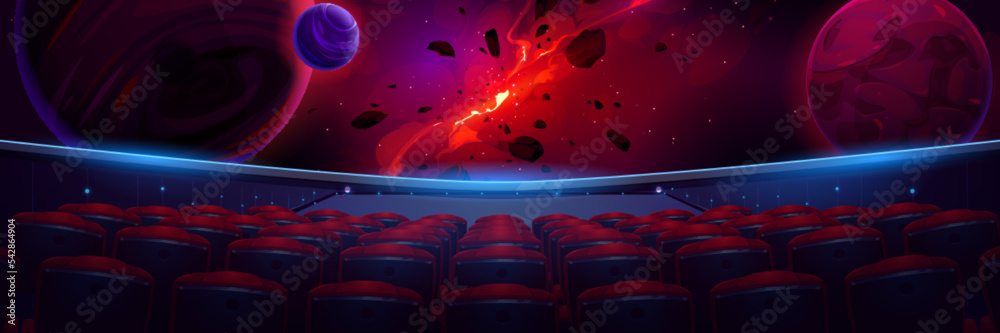 Tableau sur toile Movie theater hall with three-sided panoramic screen and audience seats