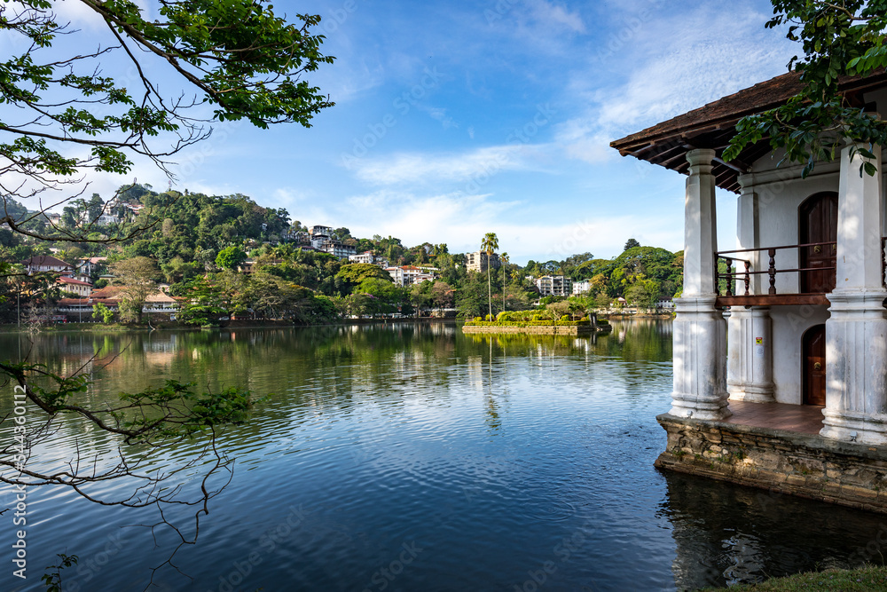 Tableau sur toile Island with Palms. Kandy Lake Promenade in Kandy city, Sri Lanka.