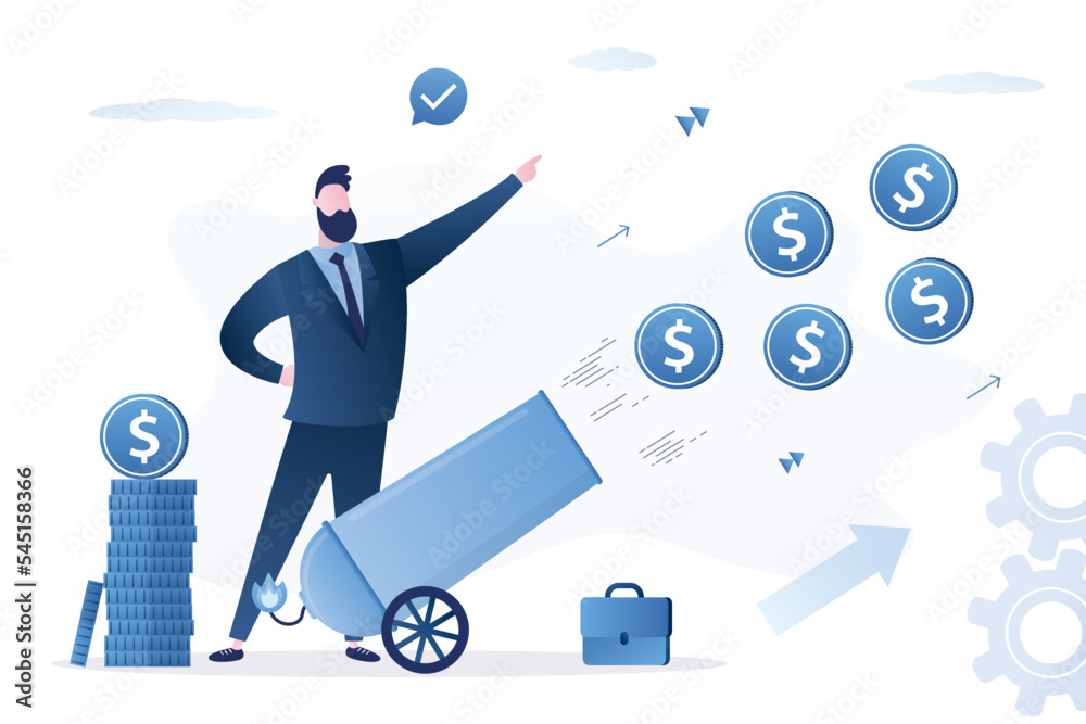 Tableau sur toile Investor shoots money from cannon, venture capital investment