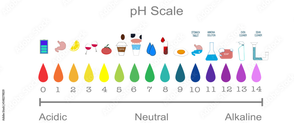 Tableau sur toile background pH scale fluid drop acidic neutral and alkaline science education che