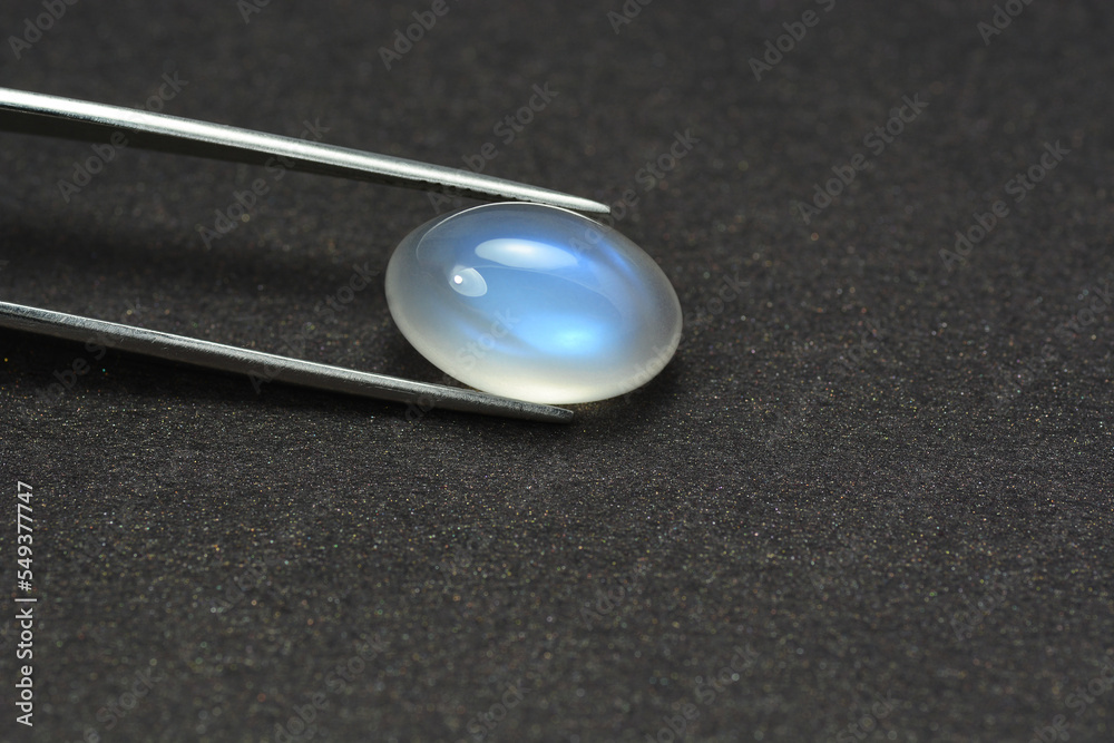 Tableau sur toile Natural adularia blue sheen oval shaped cabochon moonstone setting in tweezers