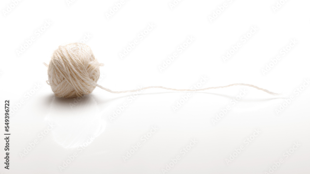 Tableau sur toile A ball of white woolen threads on a white background with a shadow
