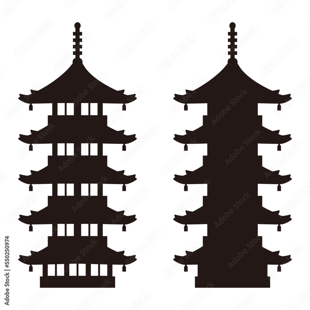 Tableau sur toile Japanese pagoda silhouette illustration, Buddhist architecture.