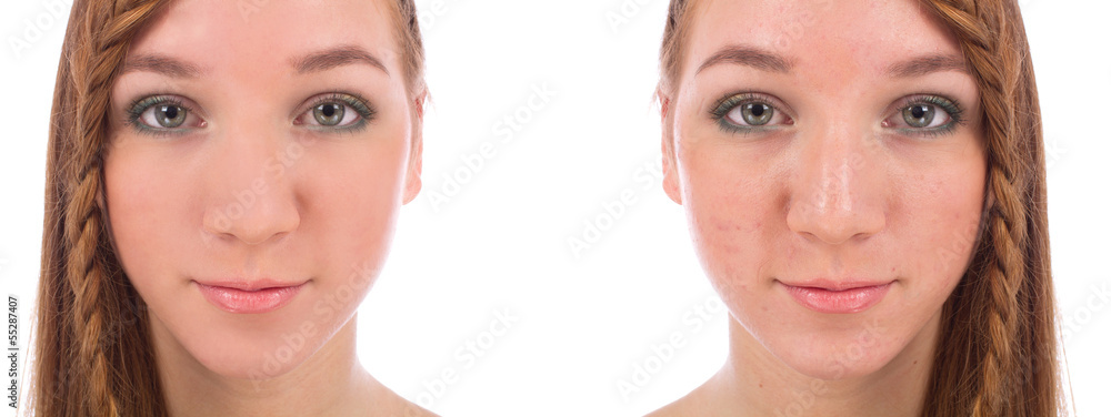 Tableau sur toile Close-up of teenager face with and without acne