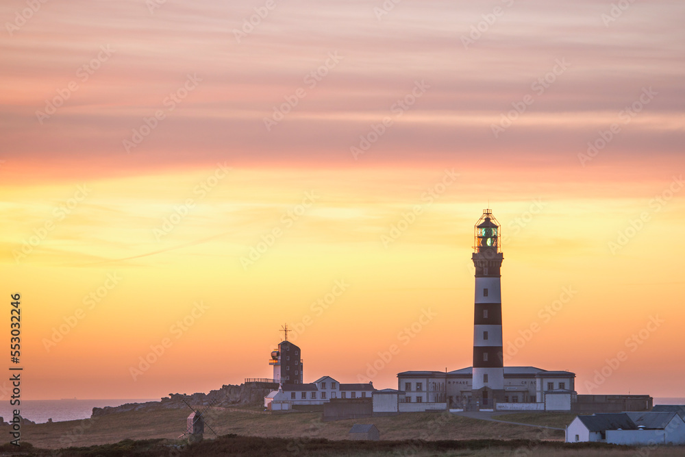 Tableau sur toile Lever de soleil sur le phare du Creac'h sur l'ile d'Ouessant en Bretagne
