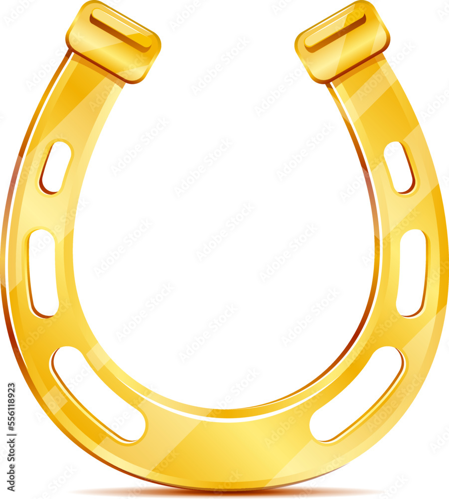Tableau sur toile One golden horseshoe in front view isolated on white