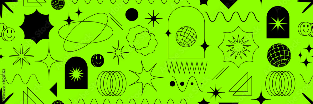 Tableau sur toile Acid tile seamless background, y2k brutalist shapes, trendy geometric elements
