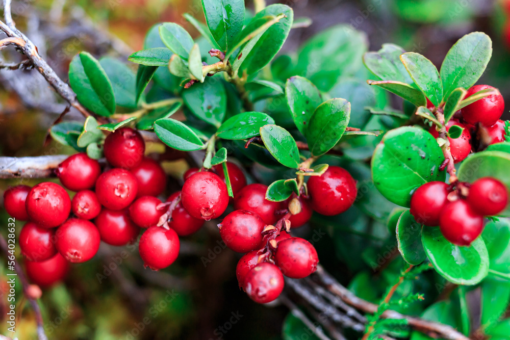 Tableau sur toile A lot of red ripe wild cranberries, close-up. Food, vegan.
