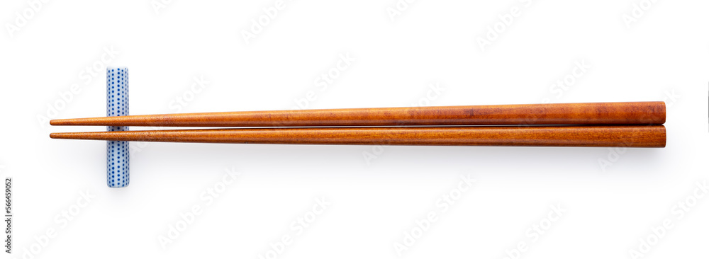 Tableau sur toile Wooden chopsticks and chopstick rests placed on a white background