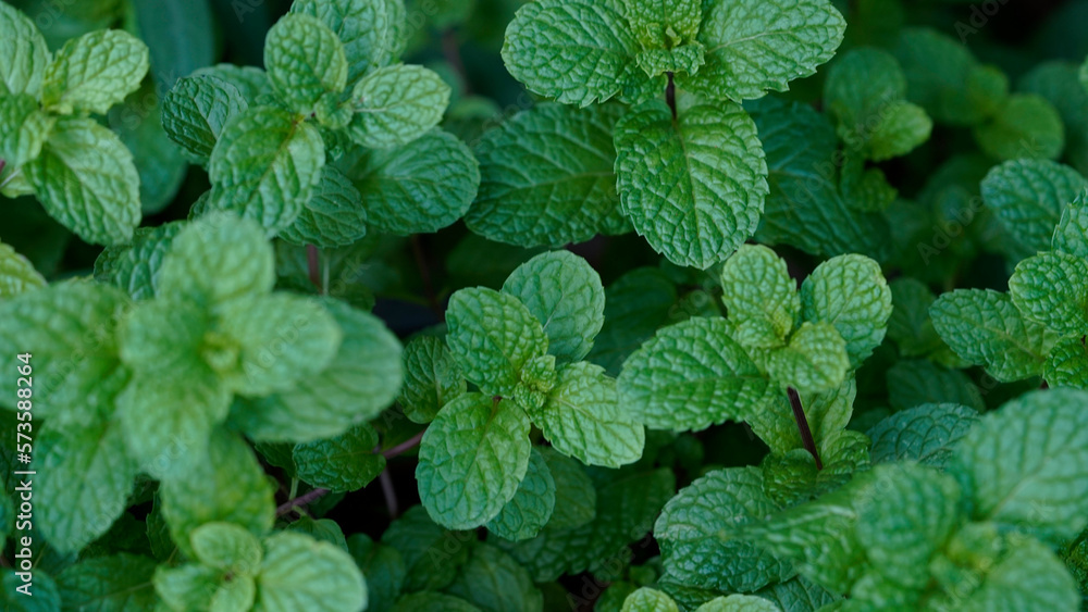 Tableau sur toile Fresh peppermint trees in organig garden.