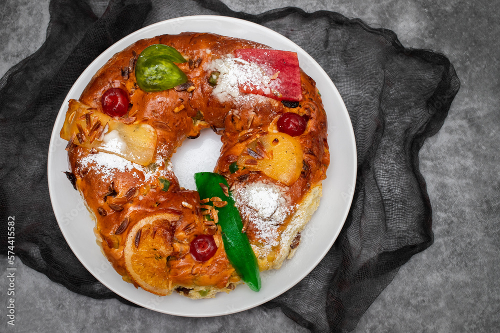 Tableau sur toile Bolo do Rei or King's Cake, Made for Christmas, typical Portuguese Christmas cak