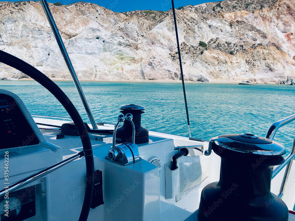 Tableau sur toile Spectacular geological view of a turquoise Milos island bay as seen from the bri