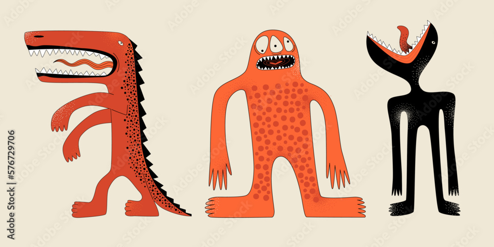 Tableau sur toile Stylized images of monsters, primitive art. Prehistoric images