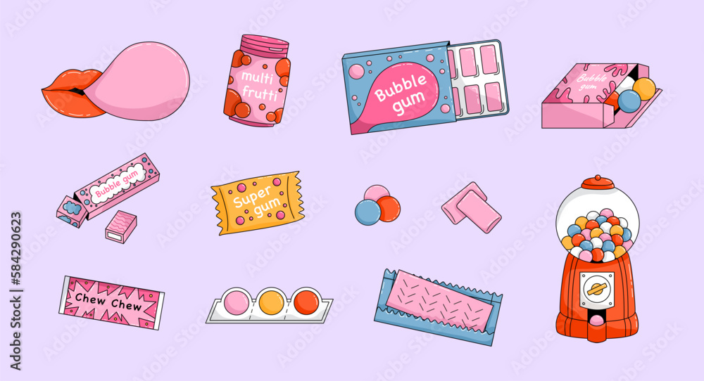 Tableau sur toile Set of Cartoon bubble gum
