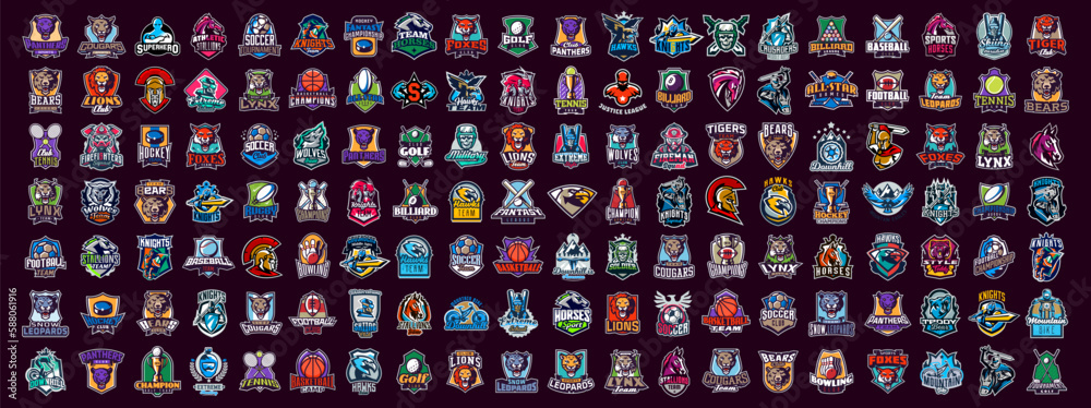 Tableau sur toile Mega set of sports, esports and mascot logos for teams and gamers