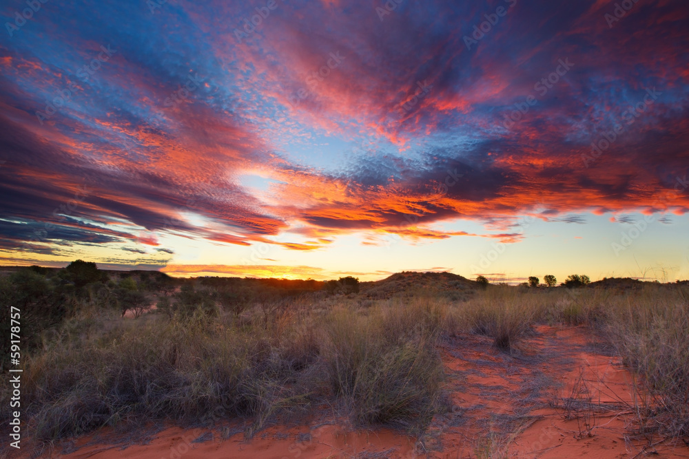 Tableau sur toile Beautiful kalahari sunset with dramatic clouds and grass