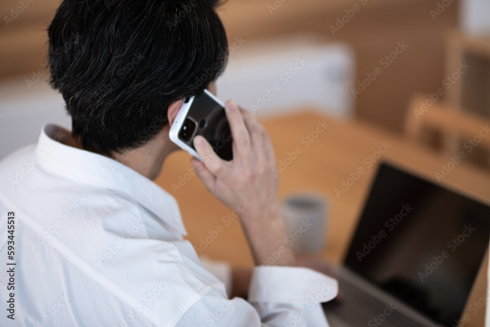 Tableau sur toile 仕事の電話をする日本人男性の後ろ姿
