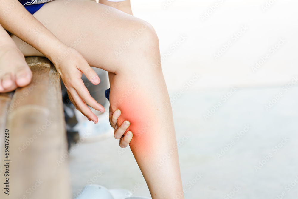 Tableau sur toile Women have leg or calf pain. Concept of health problems.