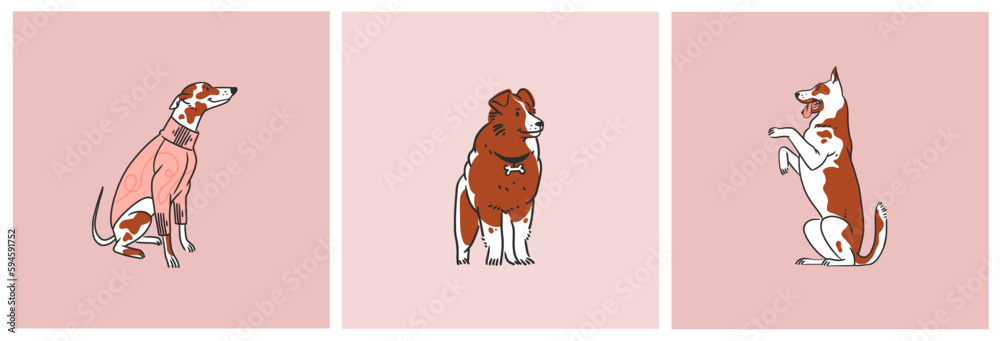 Tableau sur toile Hand drawn vector abstract graphic line collection set with diverse cute funny cartoon dogs characters