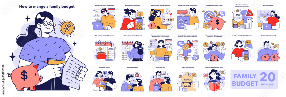 Tableau sur toile Family budget planning set