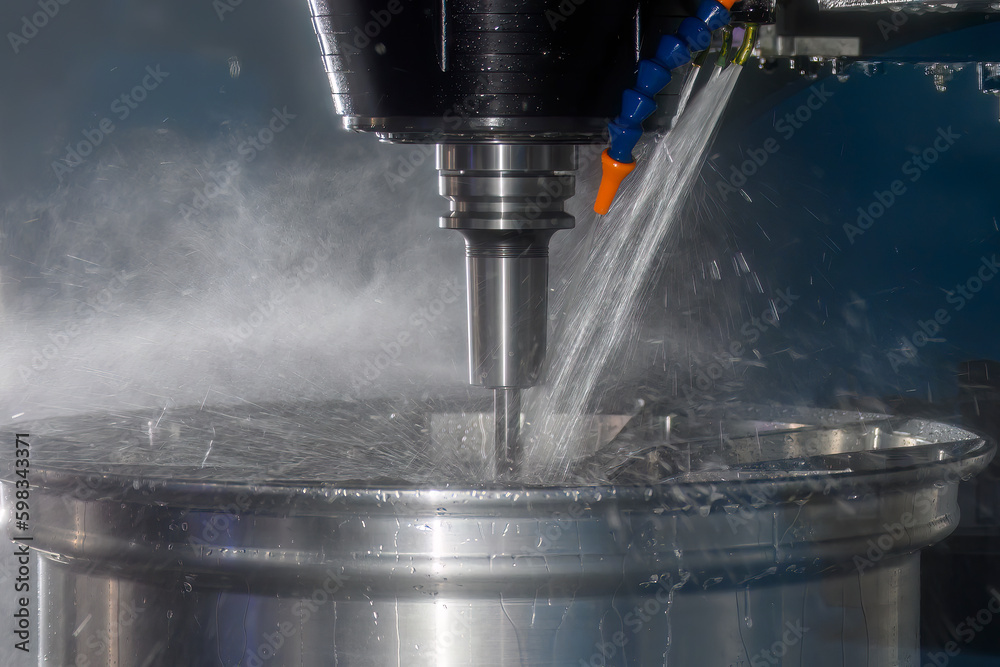 Tableau sur toile The CNC milling machine cutting the magnesium alloy wheel part with ball end mill tool