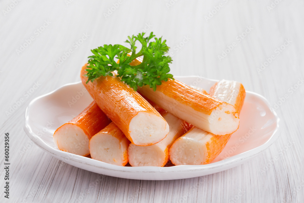 Tableau sur toile Crab sticks on a platter
