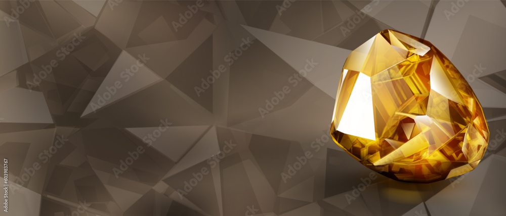 Tableau sur toile A big precious yellow crystal like a topaz with highlights and shadow on a color background