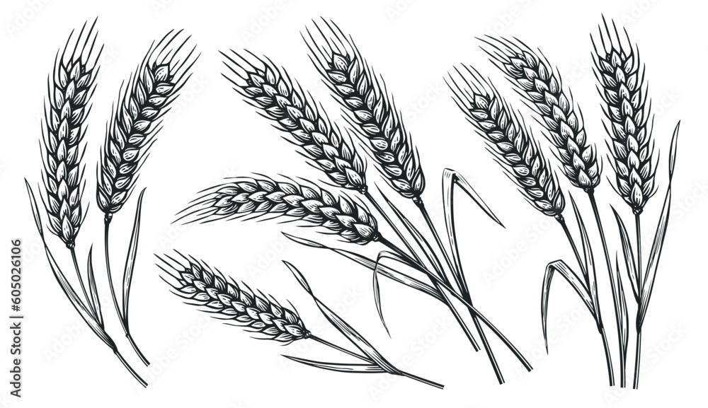 Tableau sur toile Grains plants and cereal, rye barley and wheat ear spikes