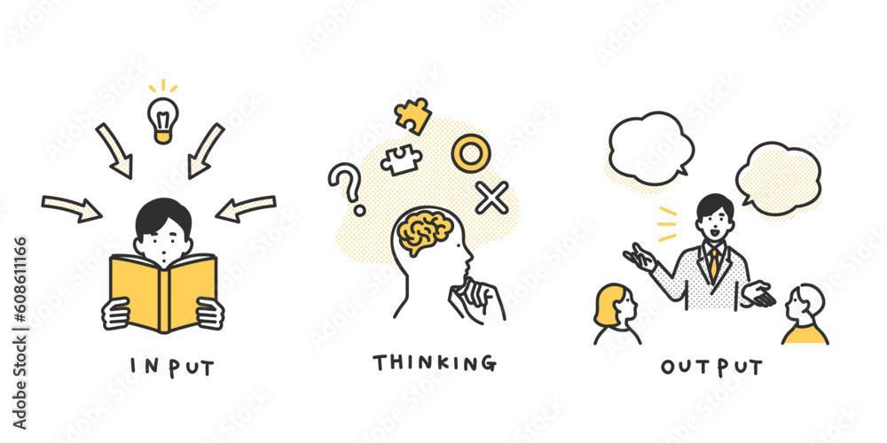 Tableau sur toile インプット・シンキング・アウトプットのイメージイラスト素材