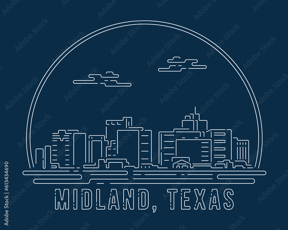 Tableau sur toile Midland, Texas - Cityscape with white abstract line corner curve modern style on