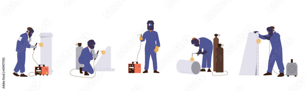 Tableau sur toile Isolated set of welder employee worker cartoon male character in uniform and pro
