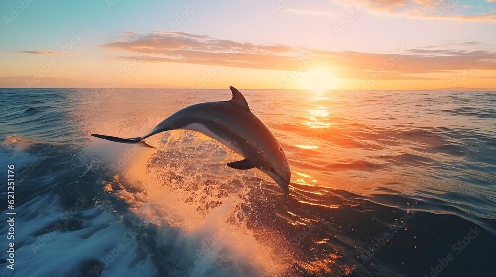 Playful dolphins jumping and splashing in the sparkling blue ocean Generative AI