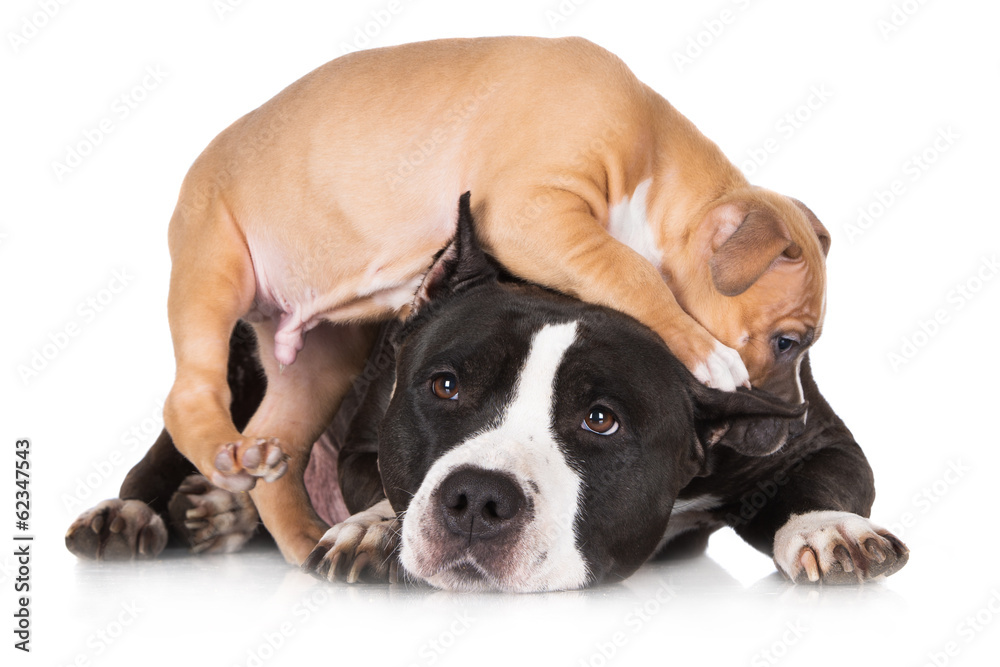 Tableau sur toile puppy playing with his mother