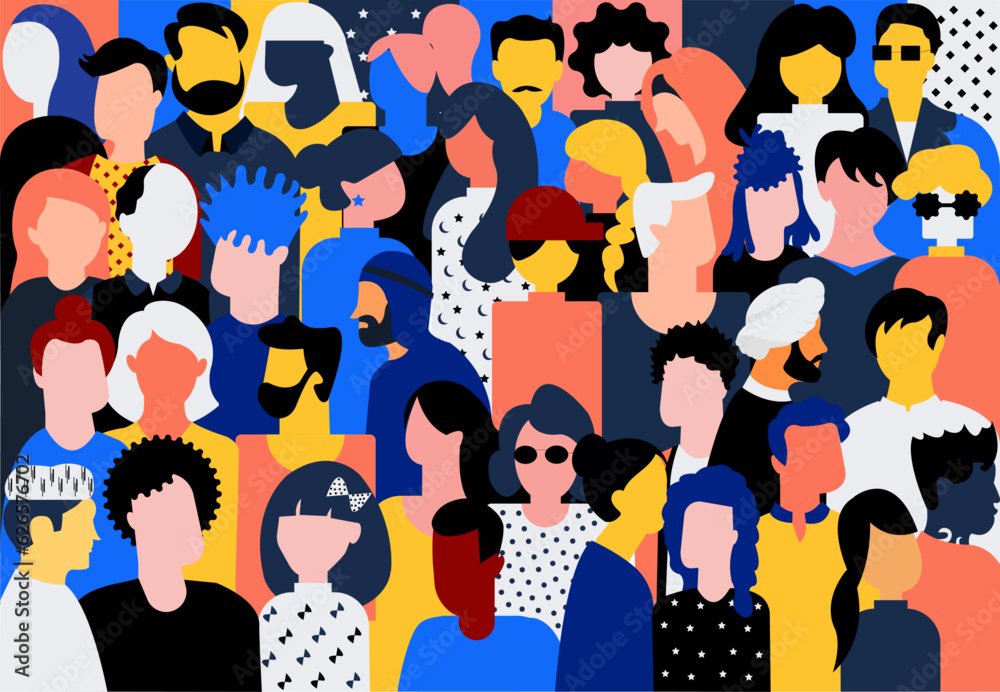 Tableau sur toile Flat illustration of a inclusive and diversified crowd all standing together wit
