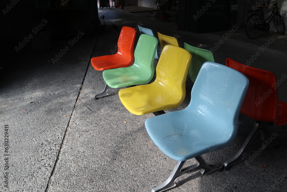 Tableau sur toile colorful waiting chairs design for still nostalgic time