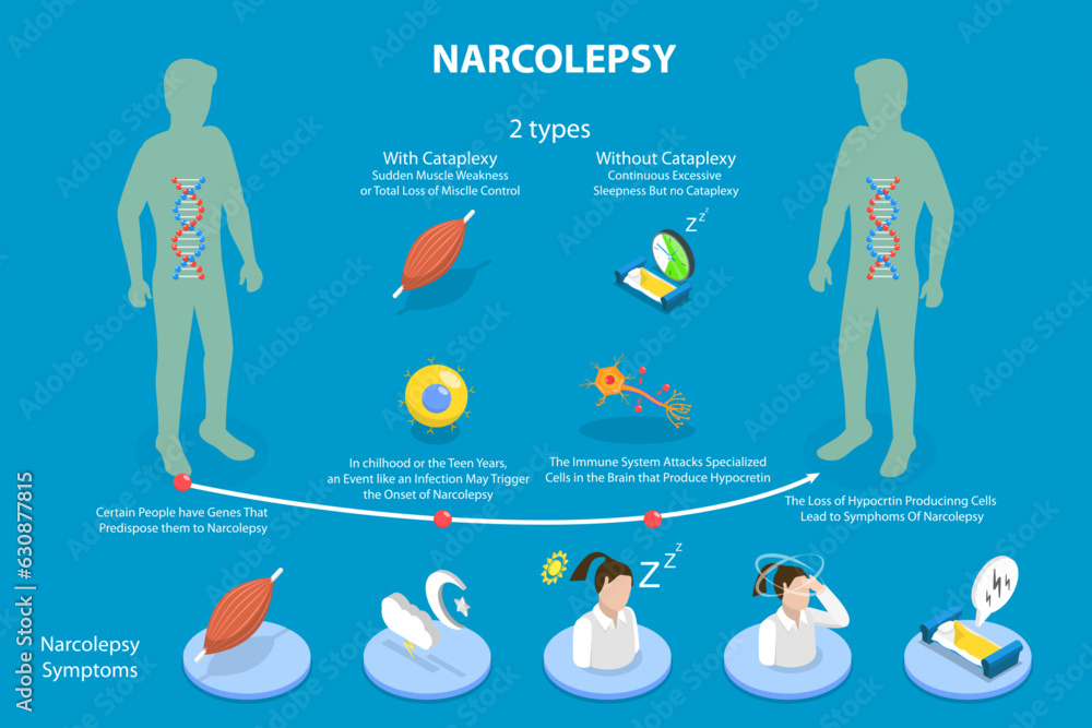 Tableau sur toile 3D Isometric Flat Vector Conceptual Illustration of Narcolepsy, Educational Sche