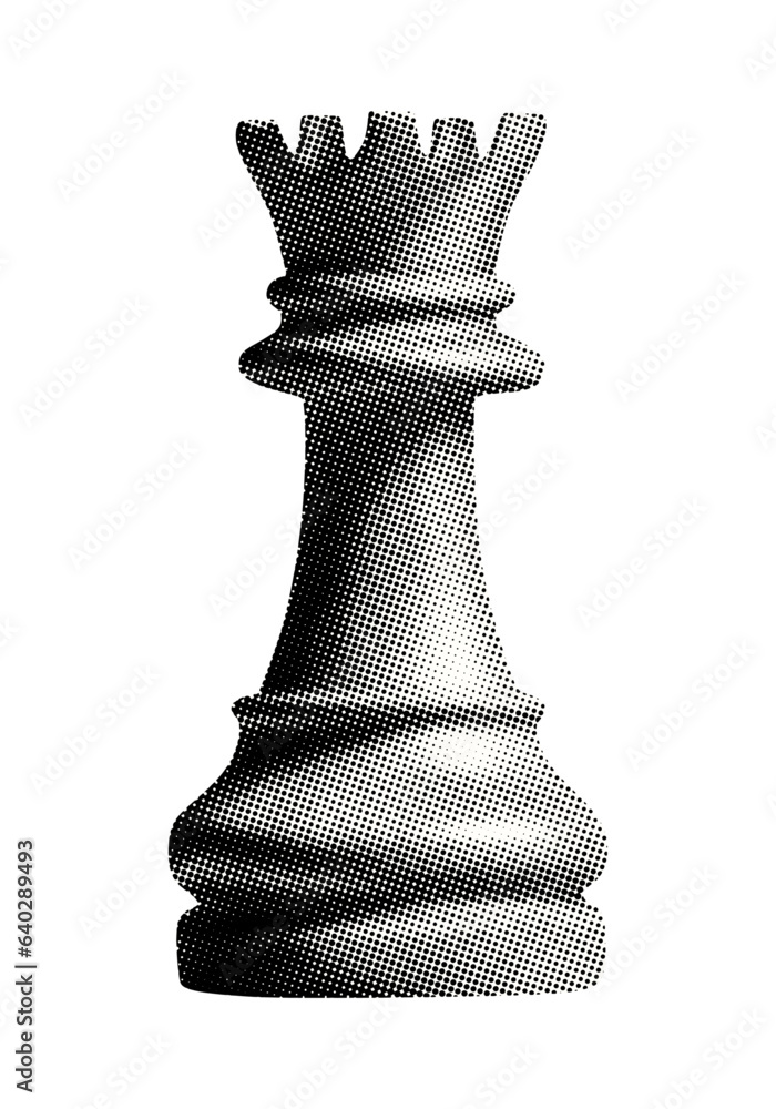 Tableau sur toile chess rook piece isolated retro halftone dotted texture black white collage elem