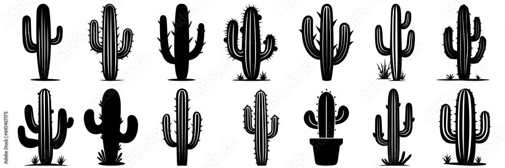 Tableau sur toile Cactus desert silhouettes set, large pack of vector silhouette design, isolated