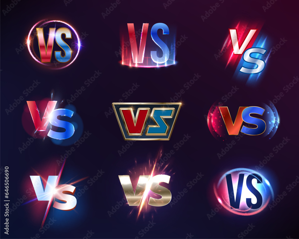 Tableau sur toile Vs or versus vector sign, game or sport confrontation symbols set with blue and red neon glow