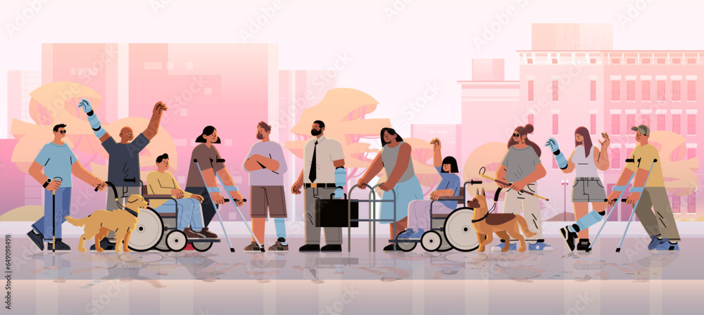Tableau sur toile group of young disabled men and women standing together feeling positive and con