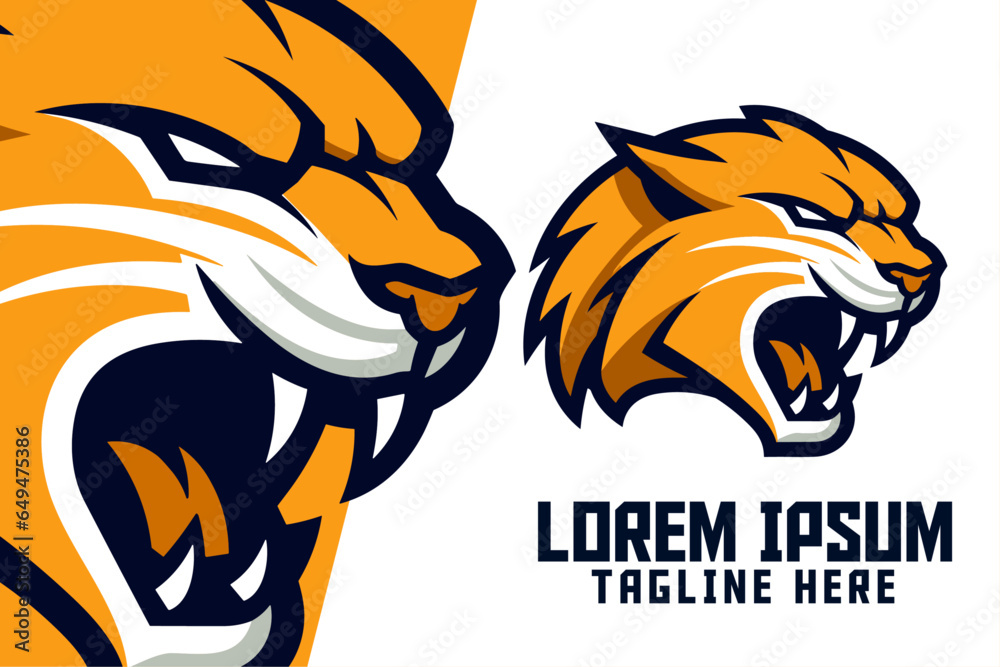 Tableau sur toile Smilodon Animal Template for Tiger Sport and Esport: Sabertooth Mascot Head Logo