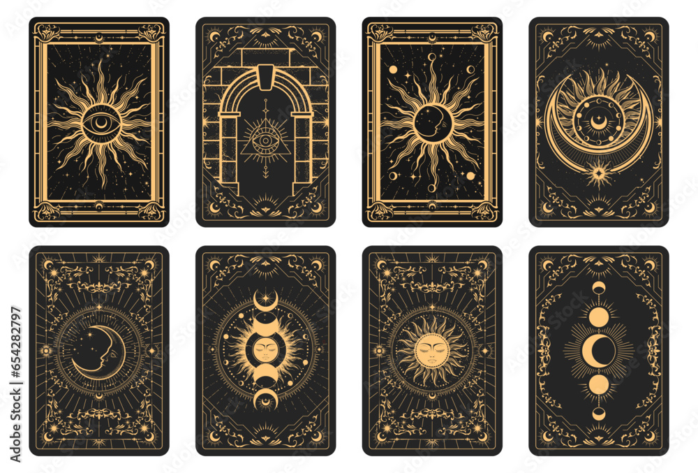 Tableau sur toile Tarot cards batch reverse side, magic frame with esoteric patterns and mystic sy