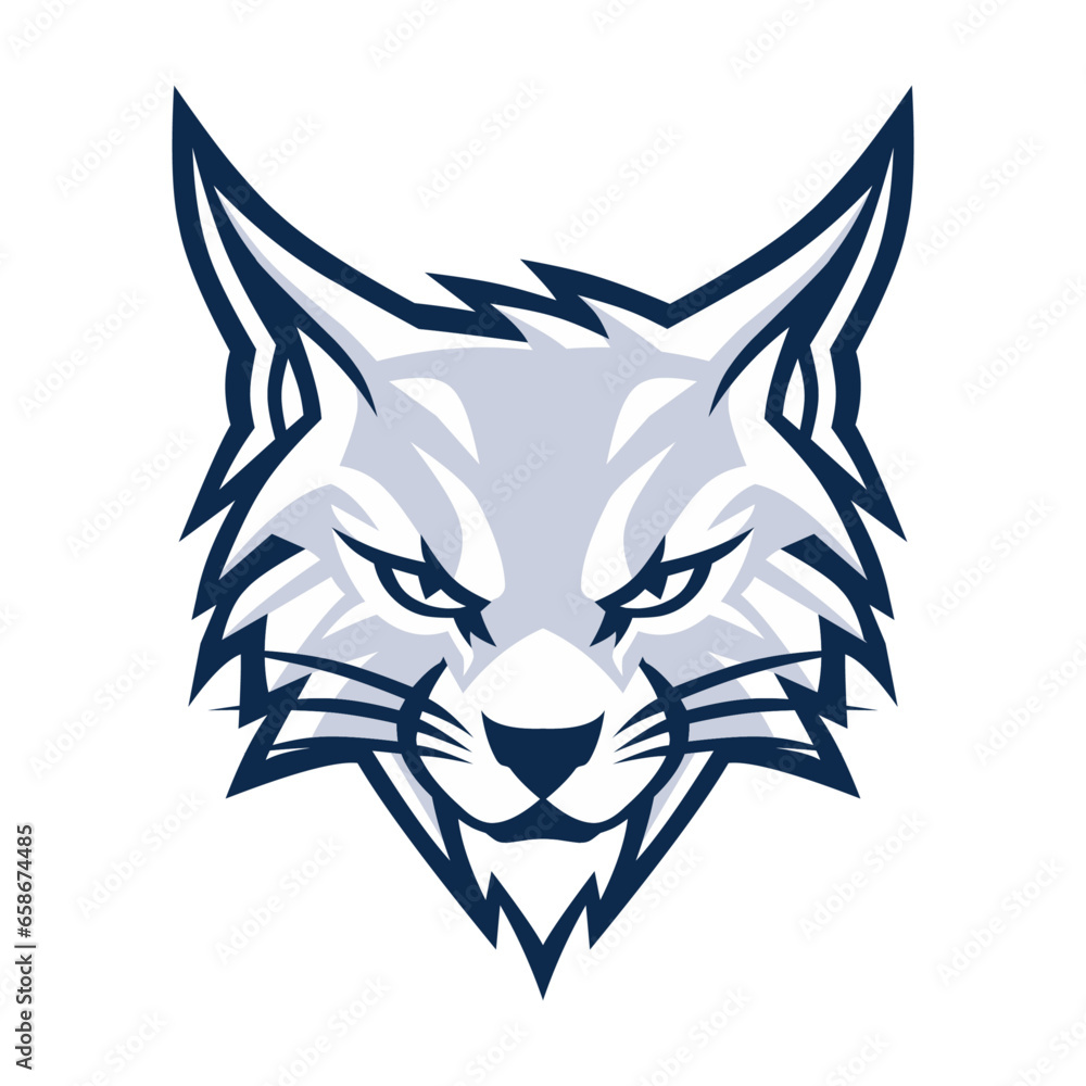 Lynx wildcat head logo. Cool white bobcat logo design.