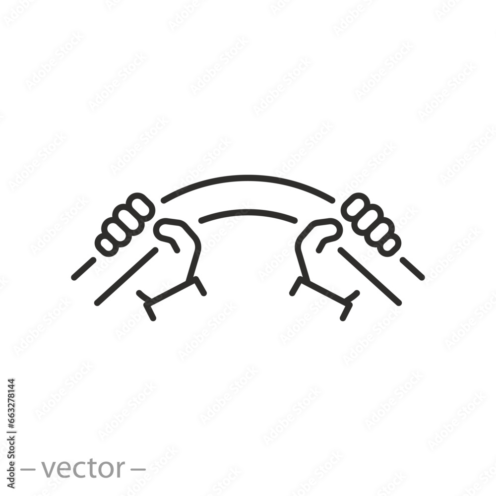 Tableau sur toile tube bending icon, pipe bend in hands, thin line symbol on white background - ed
