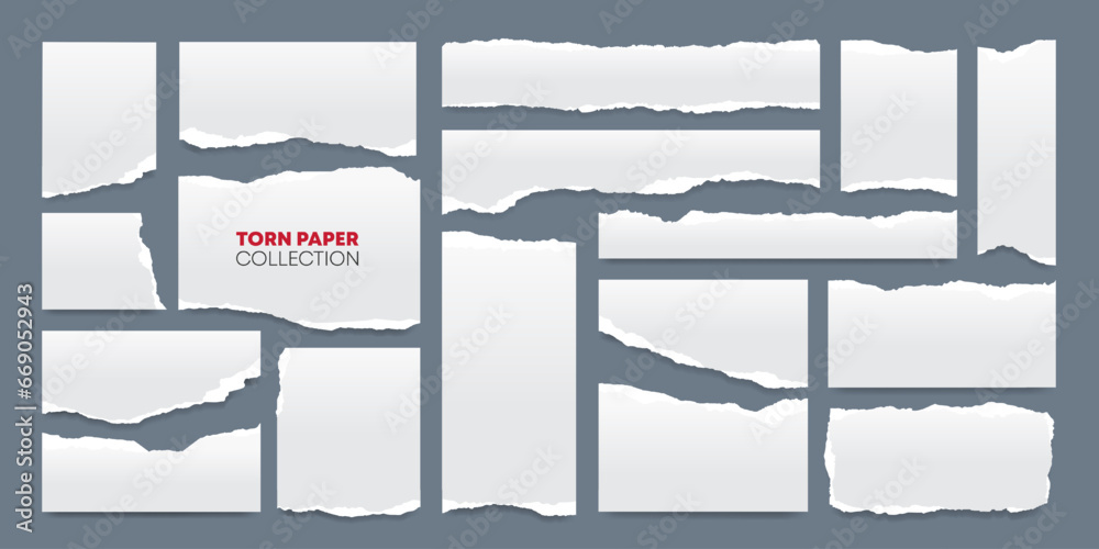 Tableau sur toile Set of torn or ripped paper or newspaper headline strip clip art with grunge texture for social media background decoration