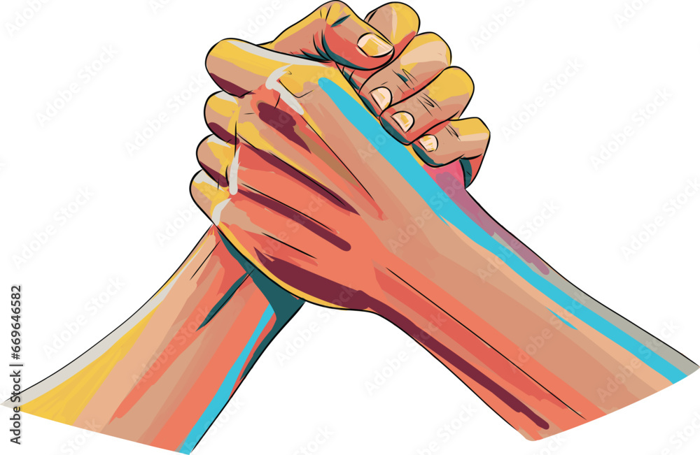 Tableau sur toile Hands of friends greeting each other