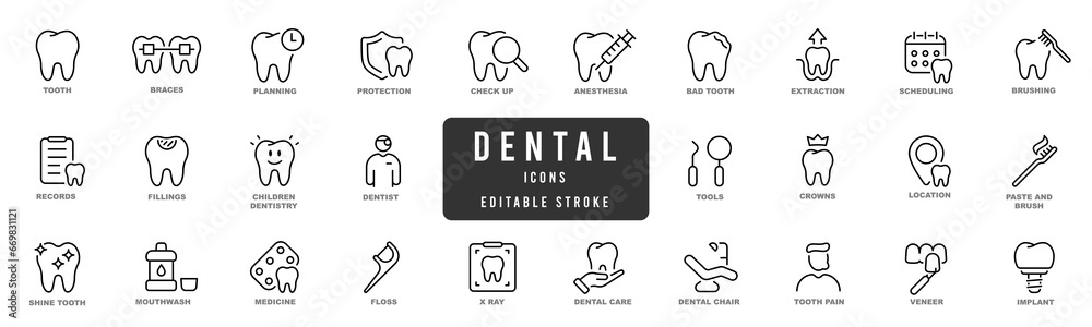 Tableau sur toile Dental icons editable stroke pictogram elements set