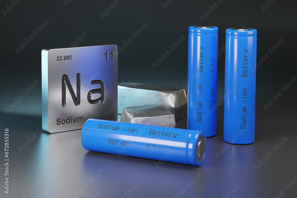 Sodium - ion batteries , metallic sodium and element symbol. 3d illustration.