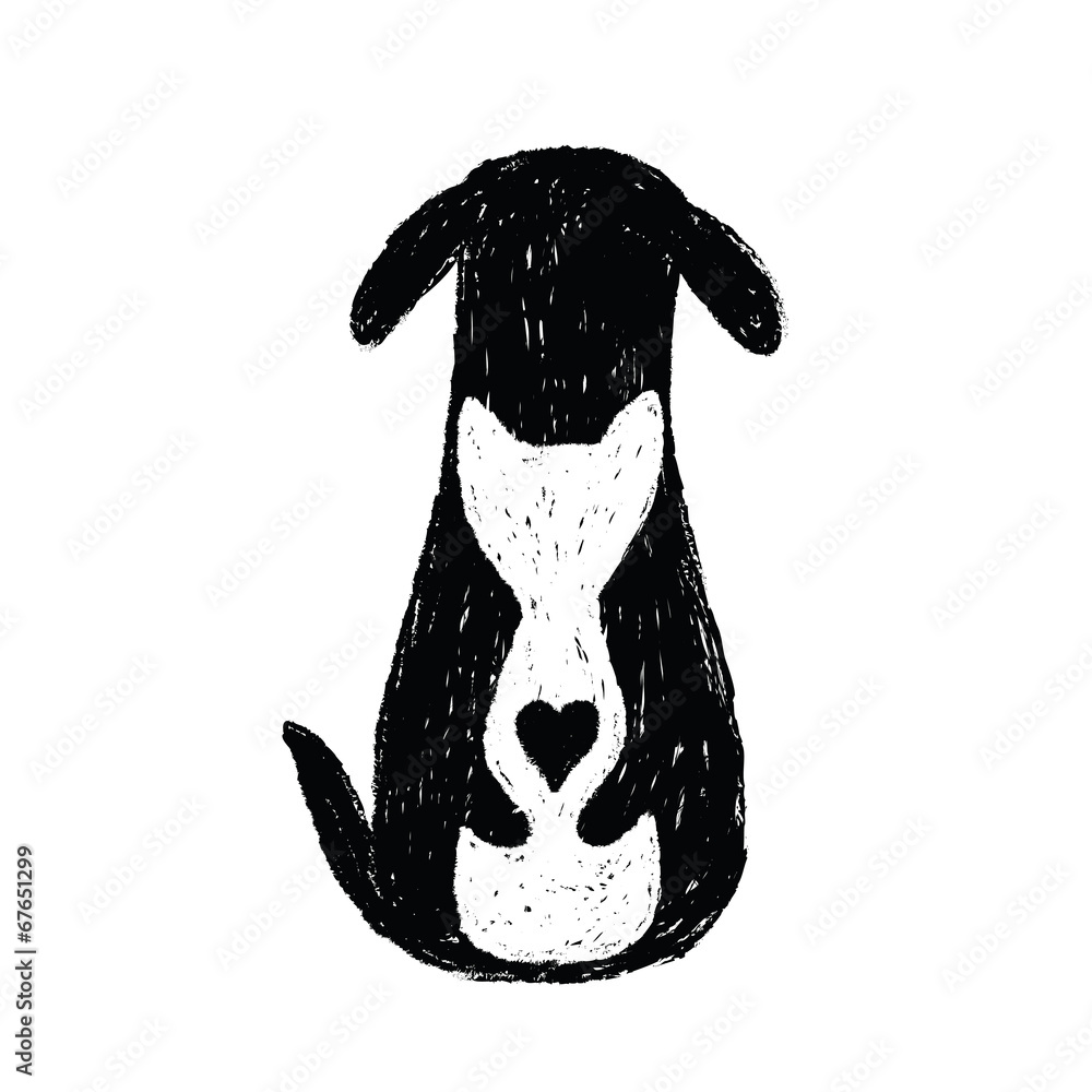 Tableau sur toile Silhouette icon of cat and dog friendship